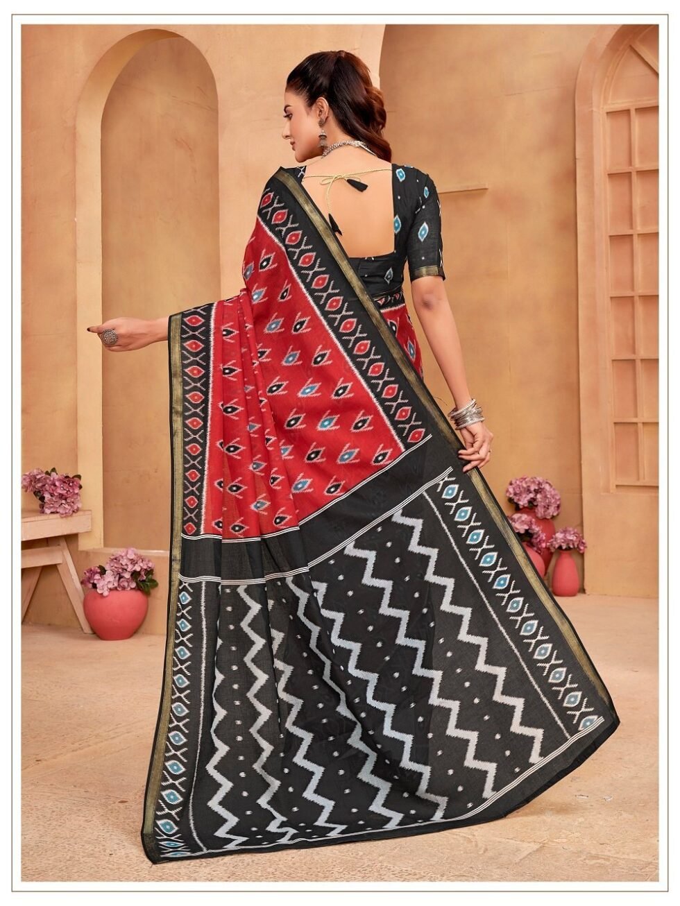 Malishka Export Cotton Printed Saree With Unstiched Blouse Piece