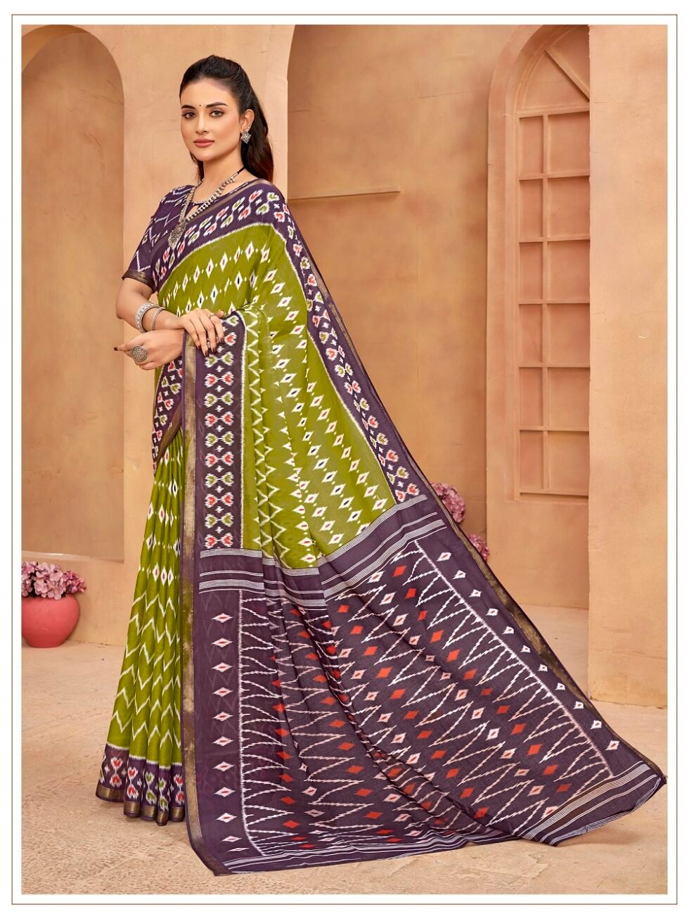 This is Cotton saree having Printed work on it. Cotton sarees are a staple of Indian traditional wear, known for their comfort, versatility, and durability. They are made from natural, breathable cotton fabric, making them ideal for various climates, especially hot and humid ones. Cotton sarees are versatile enough to be worn for everyday wear, formal occasions, and even special events.