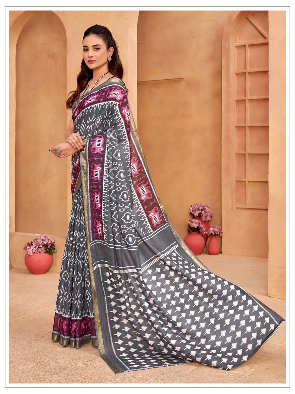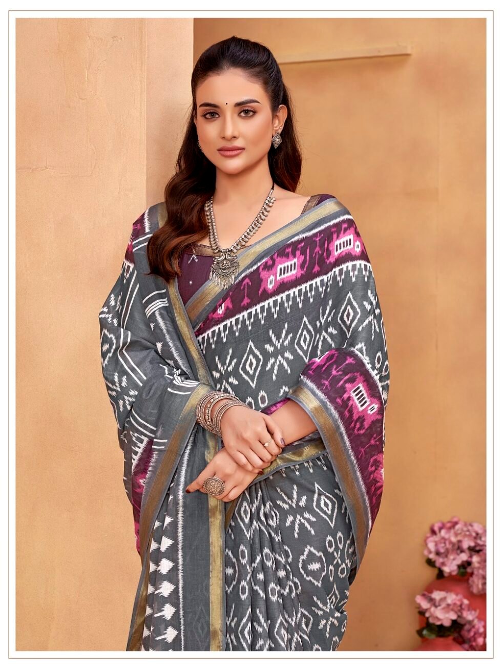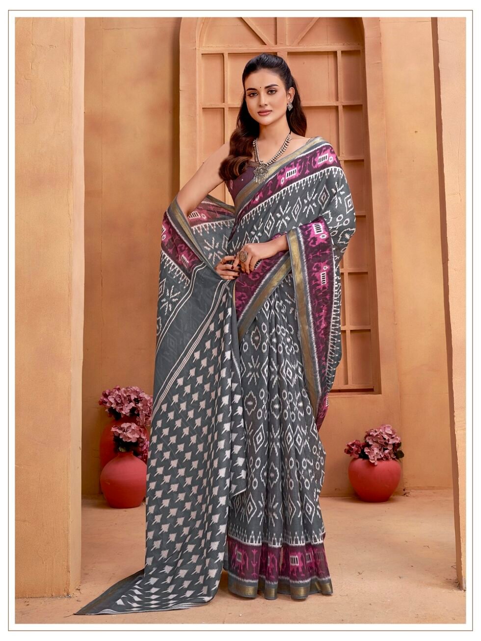 Malishka Export Cotton Printed Saree With Unstiched Blouse Piece