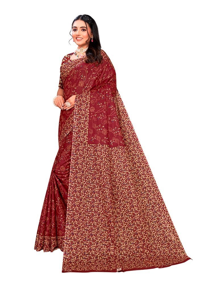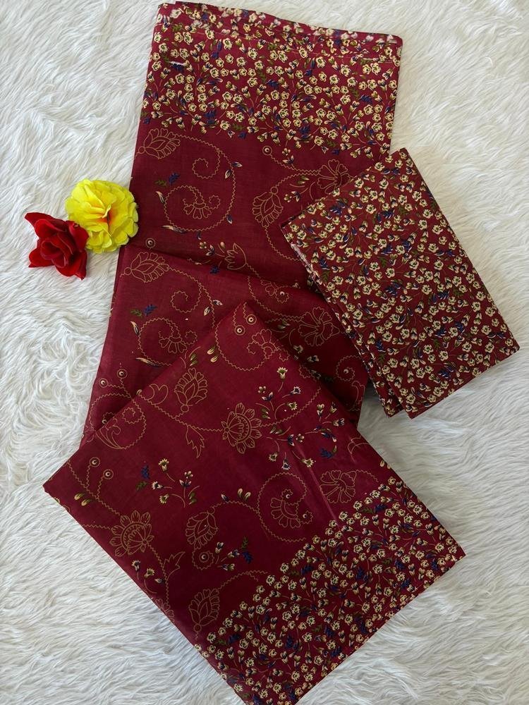 Malishka Export Cotton Printed Saree With Unstiched Blouse Piece