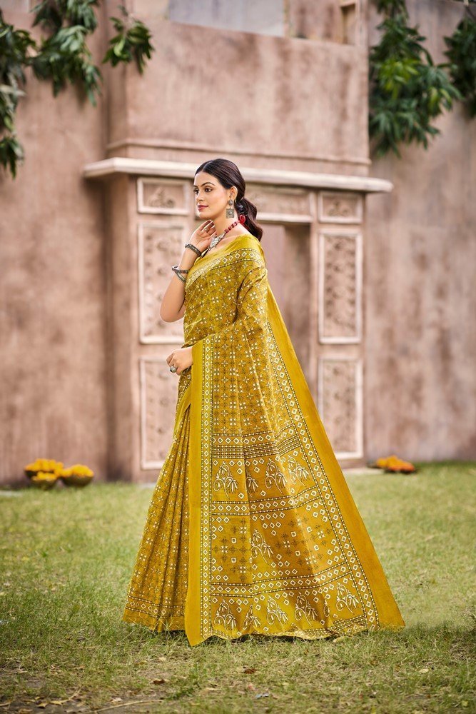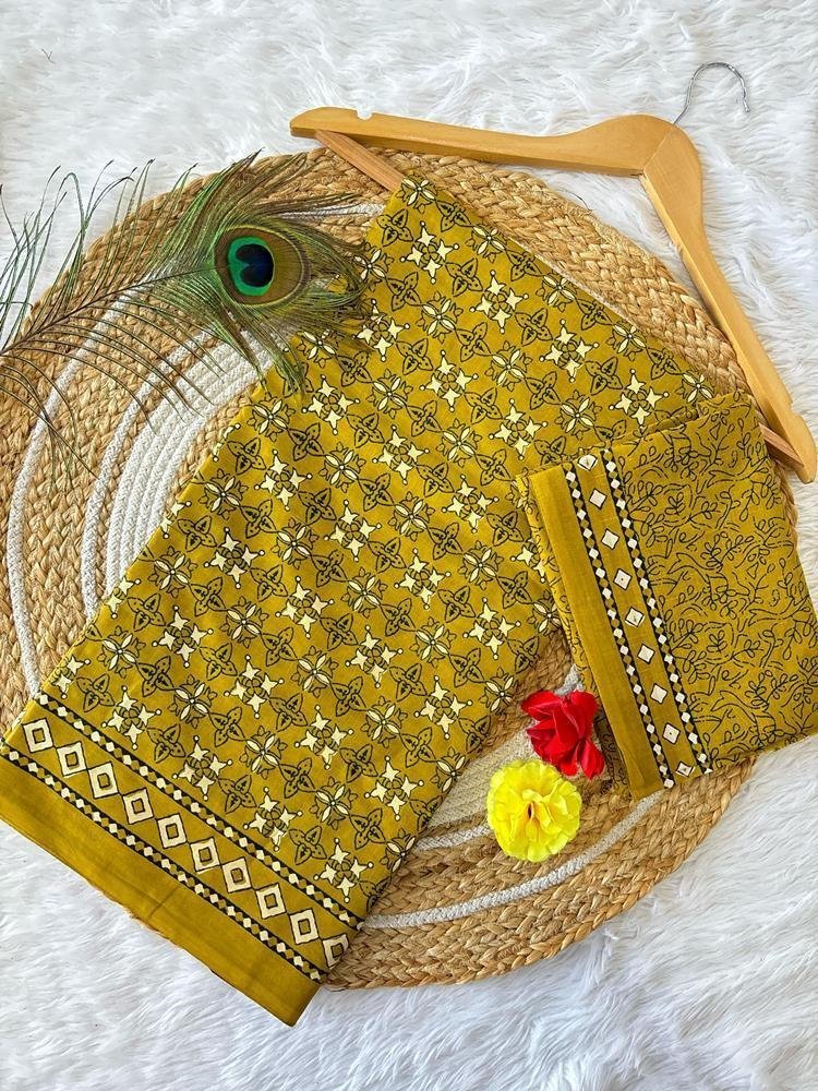 This is Cotton saree having Printed work on it. Cotton sarees are a staple of Indian traditional wear, known for their comfort, versatility, and durability. They are made from natural, breathable cotton fabric, making them ideal for various climates, especially hot and humid ones. Cotton sarees are versatile enough to be worn for everyday wear, formal occasions, and even special events.