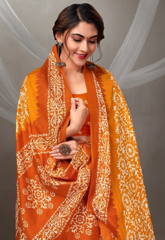 This is Cotton saree having Printed work on it. Cotton sarees are a staple of Indian traditional wear, known for their comfort, versatility, and durability. They are made from natural, breathable cotton fabric, making them ideal for various climates, especially hot and humid ones. Cotton sarees are versatile enough to be worn for everyday wear, formal occasions, and even special events.