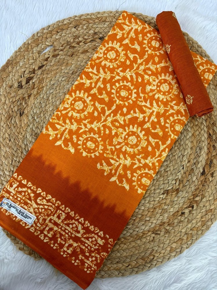 Malishka Export Cotton Printed Saree With Unstiched Blouse Piece