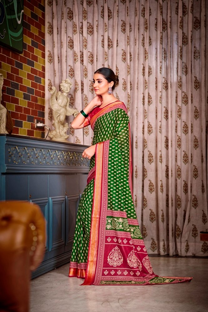 This is Cotton saree having Printed work on it. Cotton sarees are a staple of Indian traditional wear, known for their comfort, versatility, and durability. They are made from natural, breathable cotton fabric, making them ideal for various climates, especially hot and humid ones. Cotton sarees are versatile enough to be worn for everyday wear, formal occasions, and even special events.