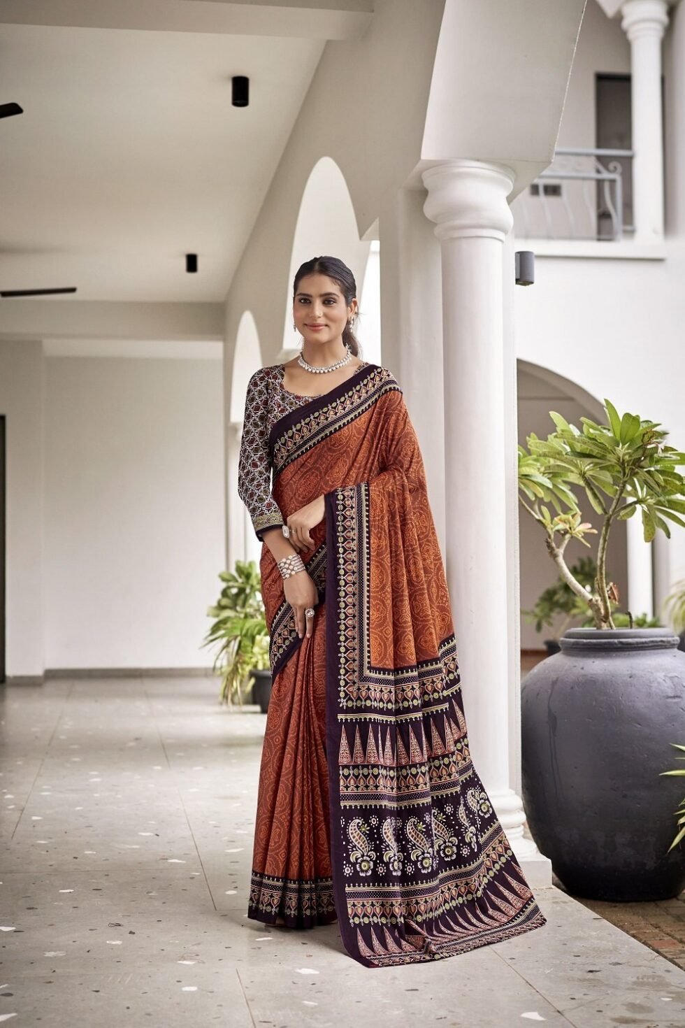 This is Cotton saree having Printed work on it. Cotton sarees are a staple of Indian traditional wear, known for their comfort, versatility, and durability. They are made from natural, breathable cotton fabric, making them ideal for various climates, especially hot and humid ones. Cotton sarees are versatile enough to be worn for everyday wear, formal occasions, and even special events.