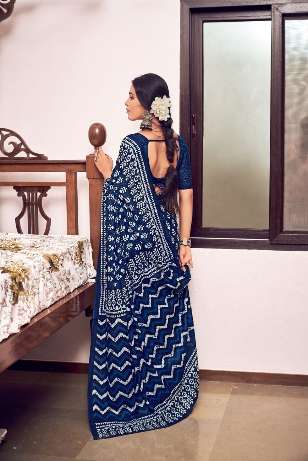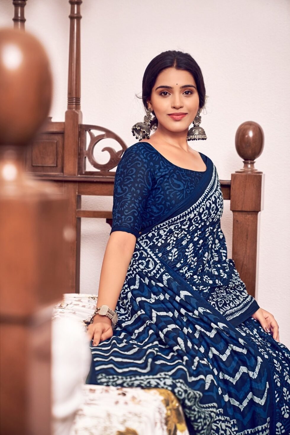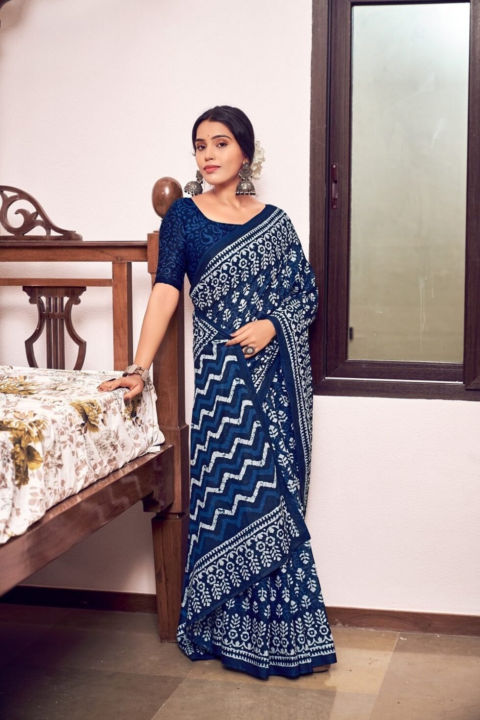 Malishka Export Cotton Printed Saree With Unstiched Blouse Piece
