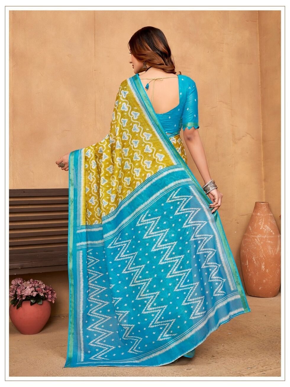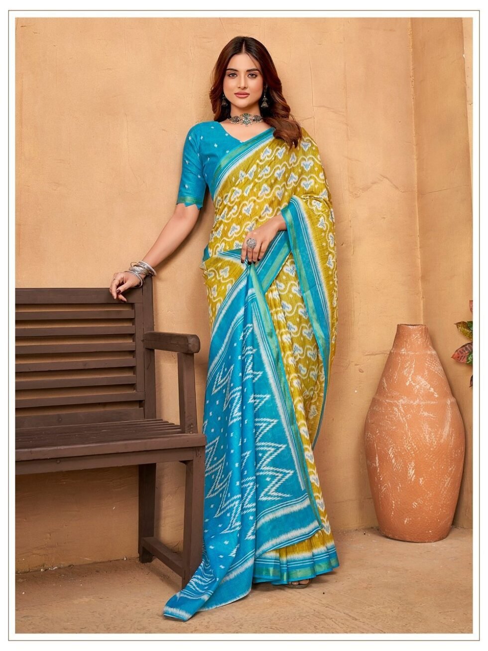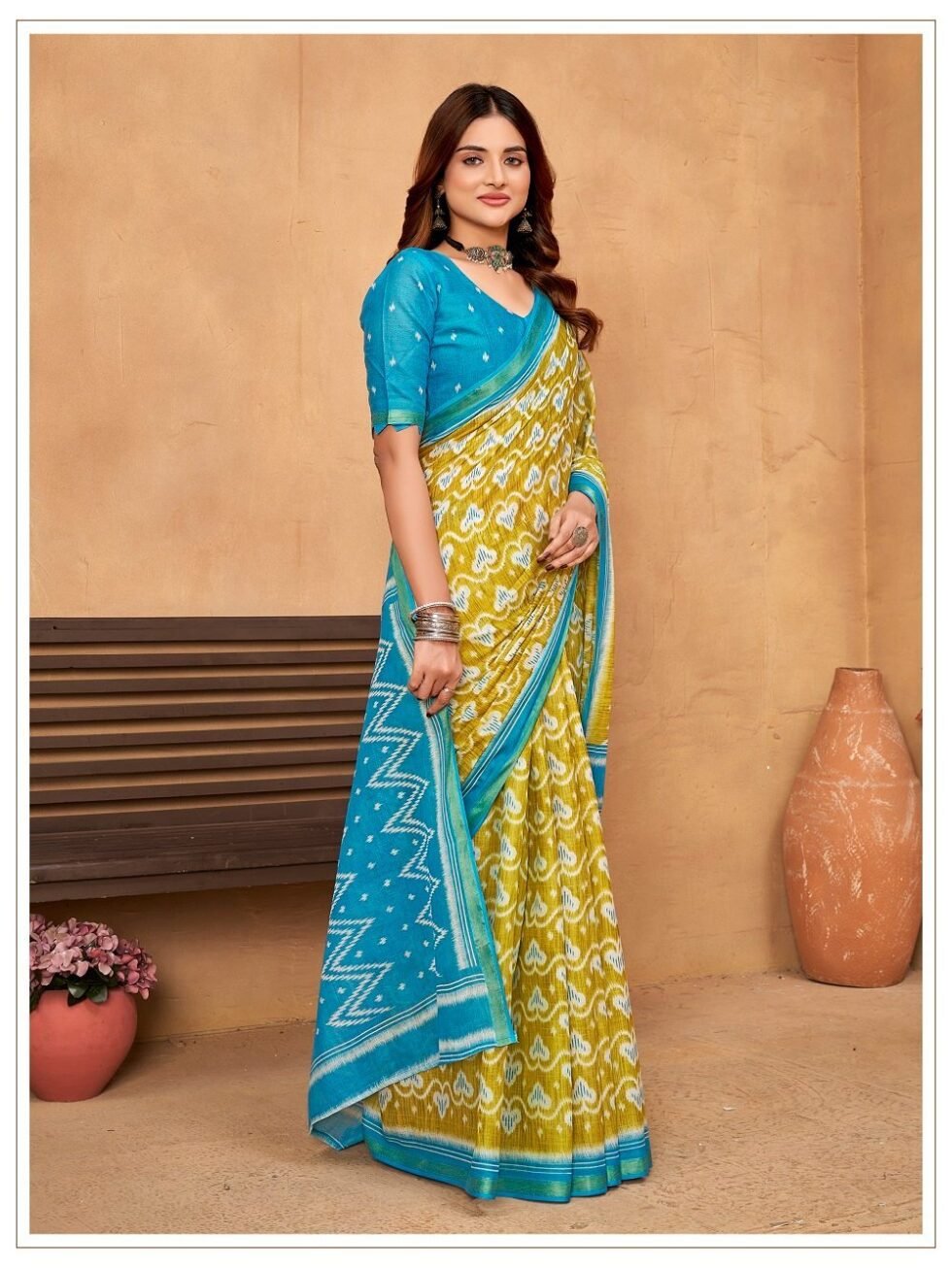 Malishka Export Cotton Printed Saree With Unstiched Blouse Piece