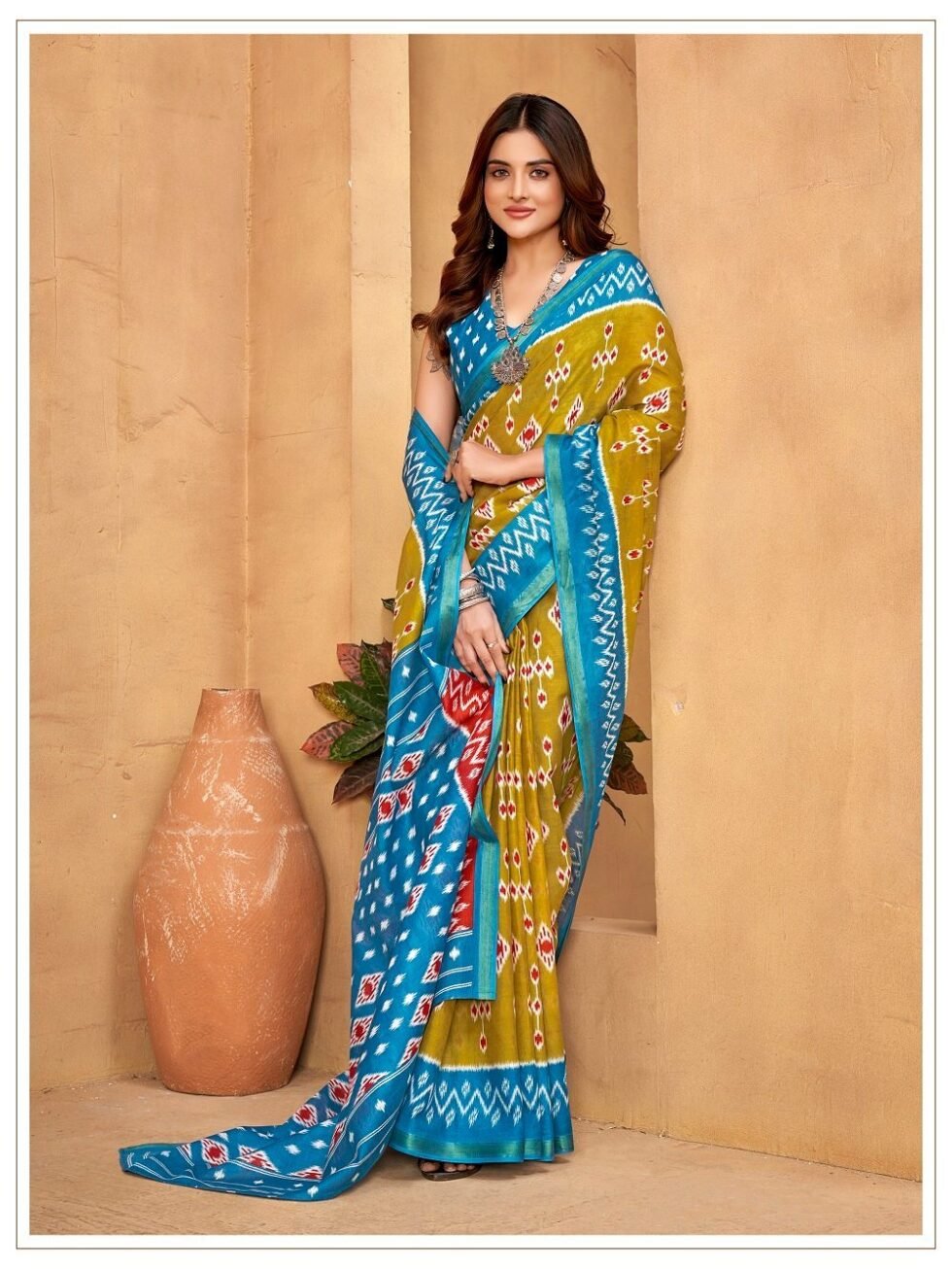 This is Cotton saree having Printed work on it. Cotton sarees are a staple of Indian traditional wear, known for their comfort, versatility, and durability. They are made from natural, breathable cotton fabric, making them ideal for various climates, especially hot and humid ones. Cotton sarees are versatile enough to be worn for everyday wear, formal occasions, and even special events.