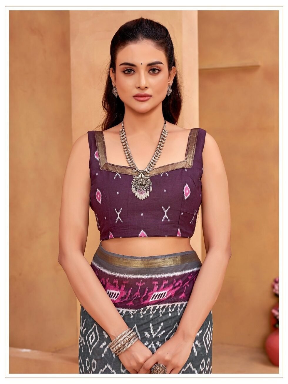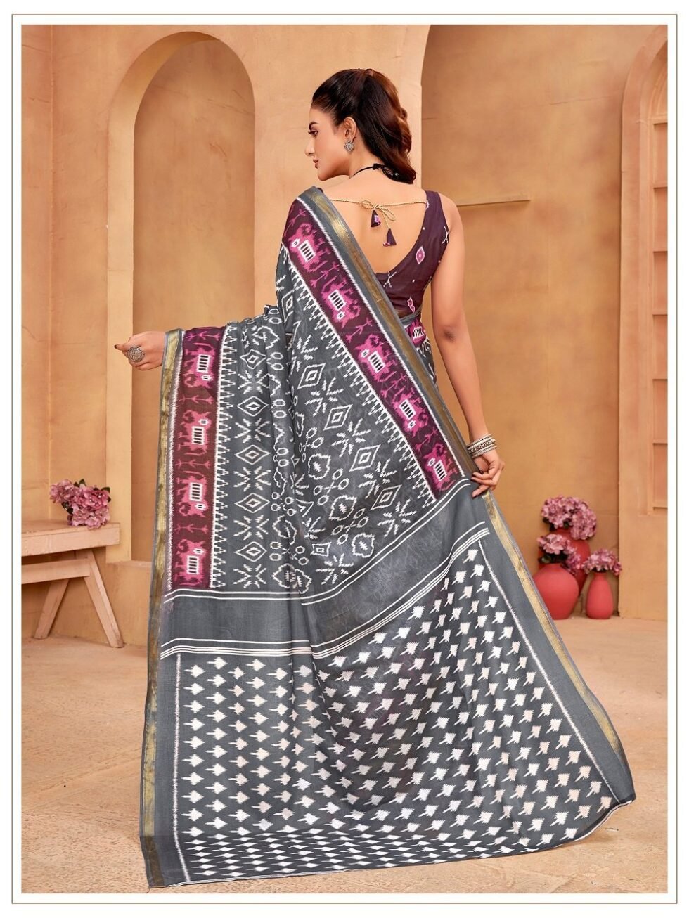 This is Cotton saree having Printed work on it. Cotton sarees are a staple of Indian traditional wear, known for their comfort, versatility, and durability. They are made from natural, breathable cotton fabric, making them ideal for various climates, especially hot and humid ones. Cotton sarees are versatile enough to be worn for everyday wear, formal occasions, and even special events.