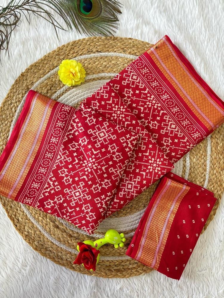 This is Cotton saree having Printed work on it. Cotton sarees are a staple of Indian traditional wear, known for their comfort, versatility, and durability. They are made from natural, breathable cotton fabric, making them ideal for various climates, especially hot and humid ones. Cotton sarees are versatile enough to be worn for everyday wear, formal occasions, and even special events.