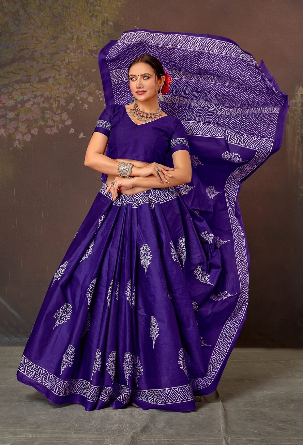Malishka Export Cotton Printed Saree With Unstiched Blouse Piece