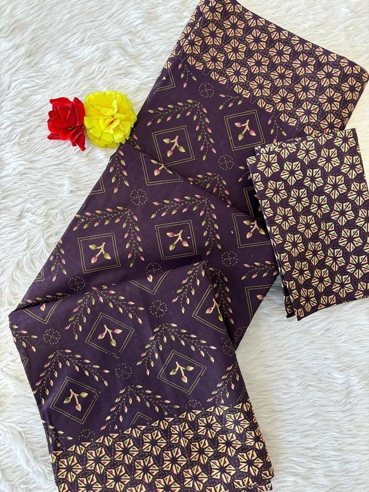 This is Cotton saree having Printed work on it. Cotton sarees are a staple of Indian traditional wear, known for their comfort, versatility, and durability. They are made from natural, breathable cotton fabric, making them ideal for various climates, especially hot and humid ones. Cotton sarees are versatile enough to be worn for everyday wear, formal occasions, and even special events.