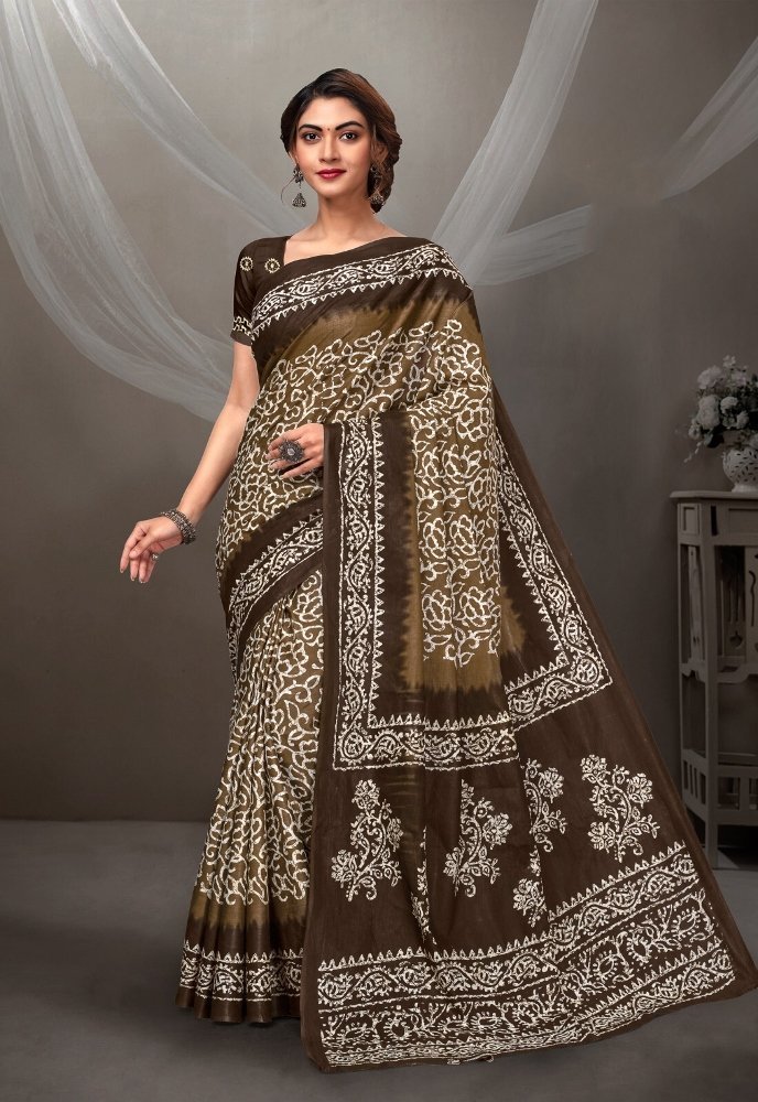 Malishka Export Cotton Printed Saree With Unstiched Blouse Piece