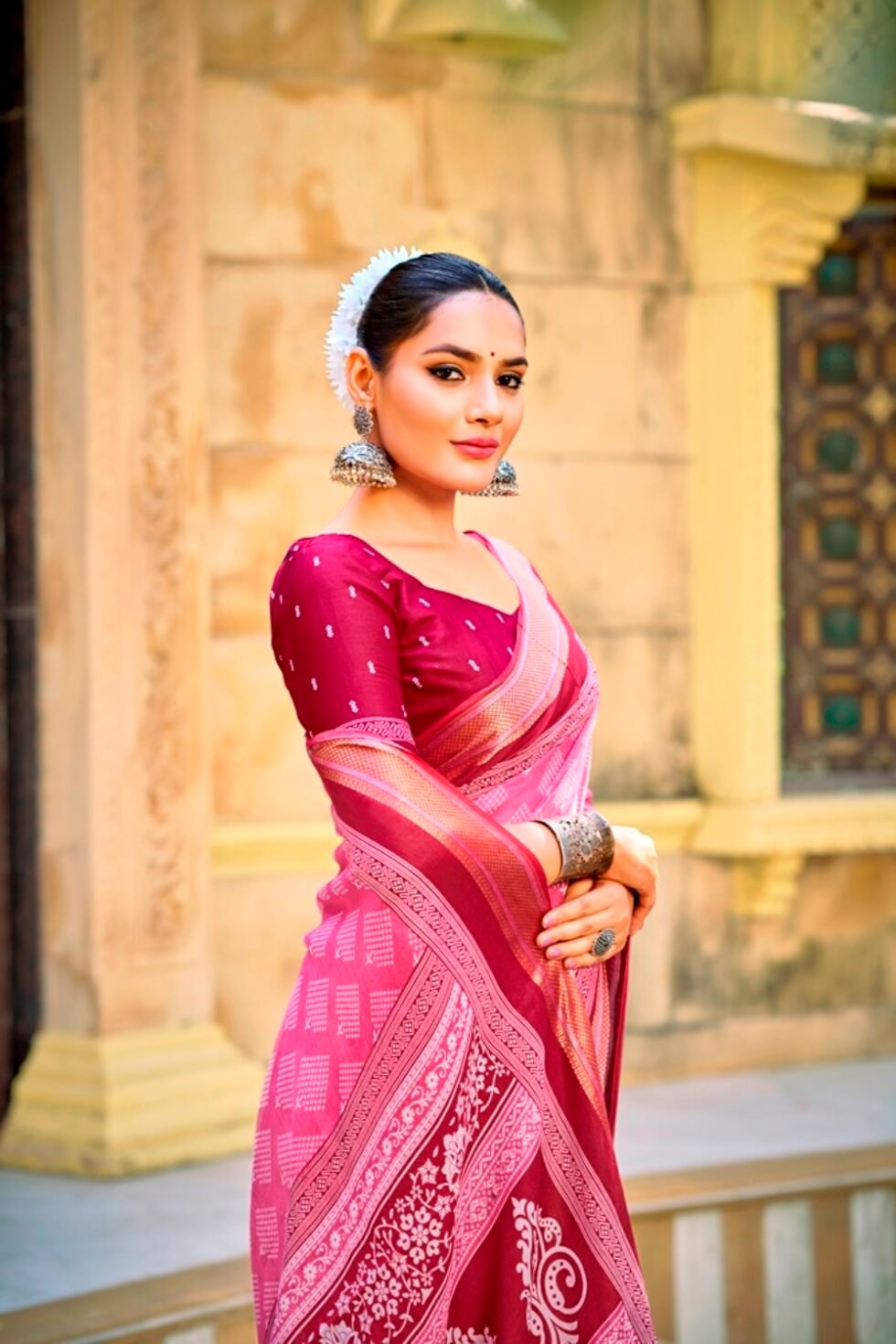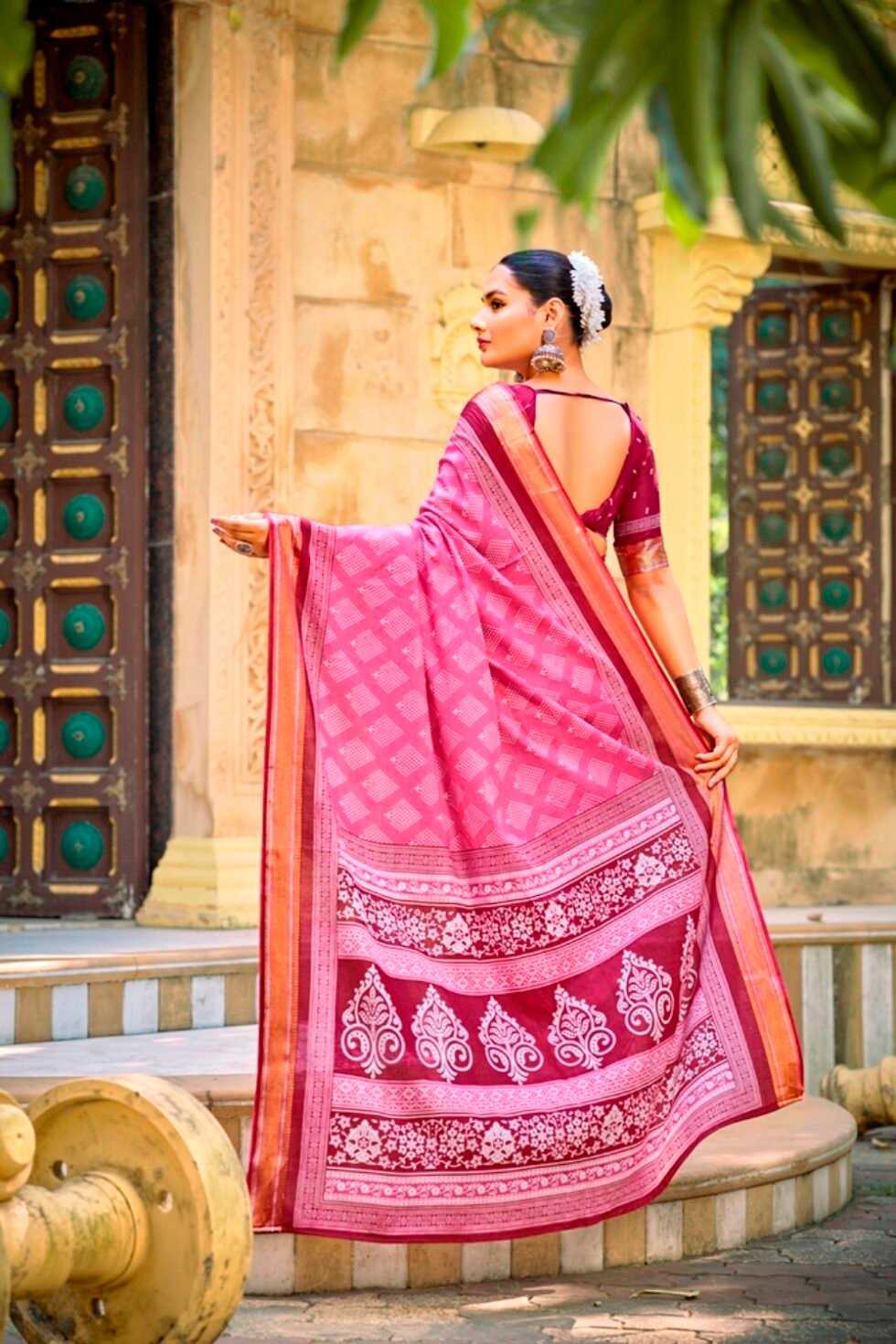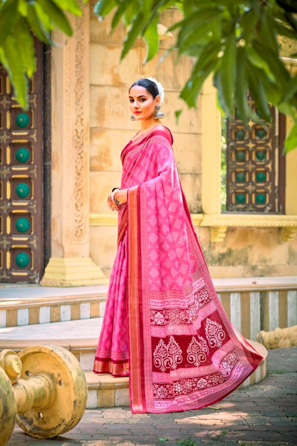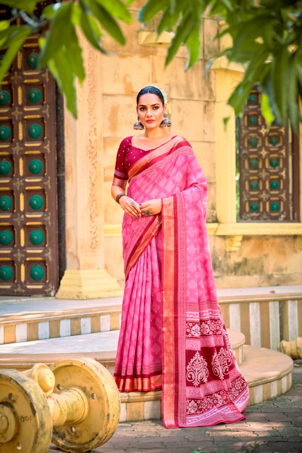 This is Cotton saree having Printed work on it. Cotton sarees are a staple of Indian traditional wear, known for their comfort, versatility, and durability. They are made from natural, breathable cotton fabric, making them ideal for various climates, especially hot and humid ones. Cotton sarees are versatile enough to be worn for everyday wear, formal occasions, and even special events.
