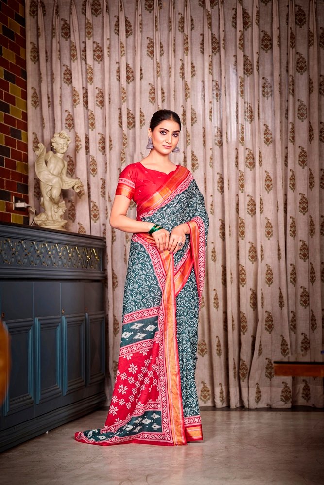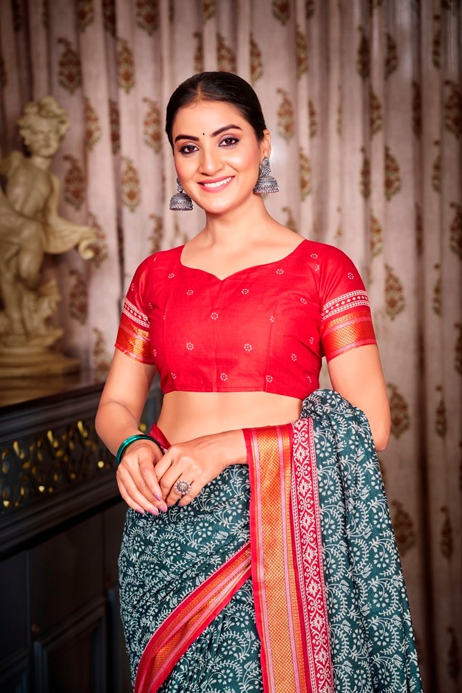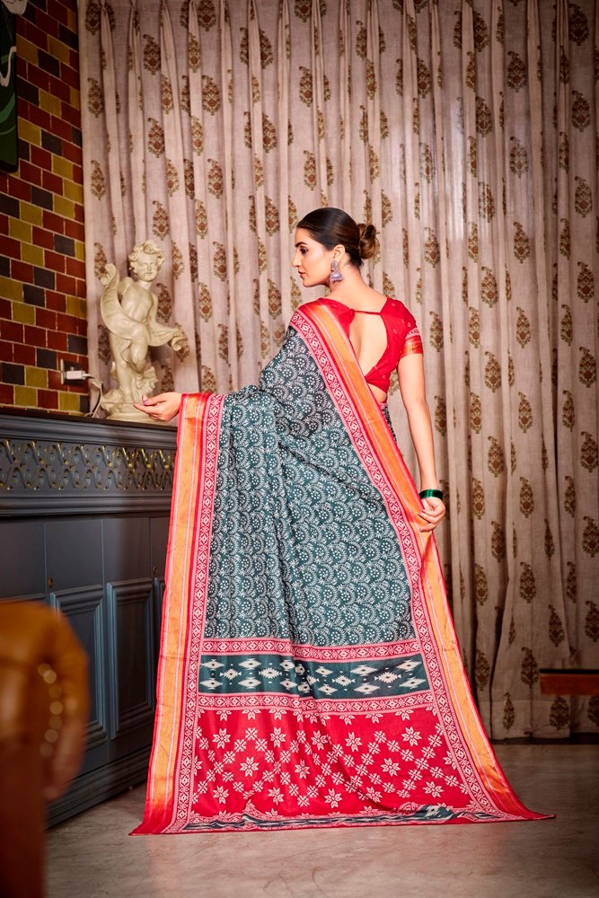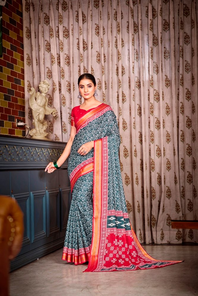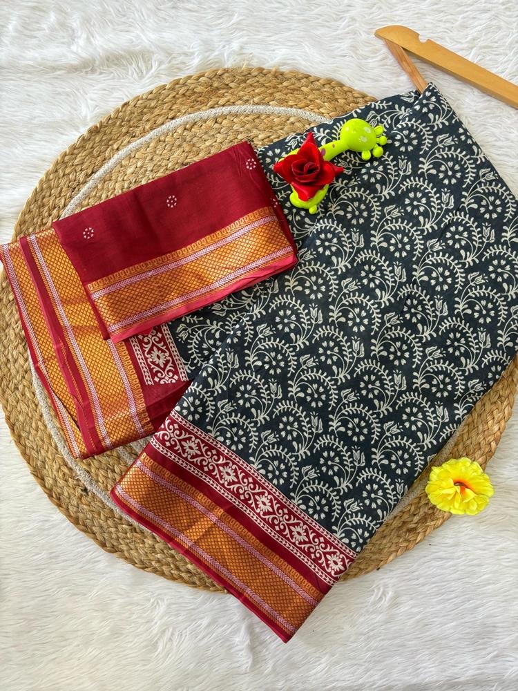 This is Cotton saree having Printed work on it. Cotton sarees are a staple of Indian traditional wear, known for their comfort, versatility, and durability. They are made from natural, breathable cotton fabric, making them ideal for various climates, especially hot and humid ones. Cotton sarees are versatile enough to be worn for everyday wear, formal occasions, and even special events.