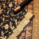 Malishka Export Jacquard Lichi Silk Black Saree With Unstiched Blouse Piece