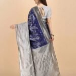 Malishka Export Jacquard Lichi Silk Blue Saree With Unstiched Blouse Piece