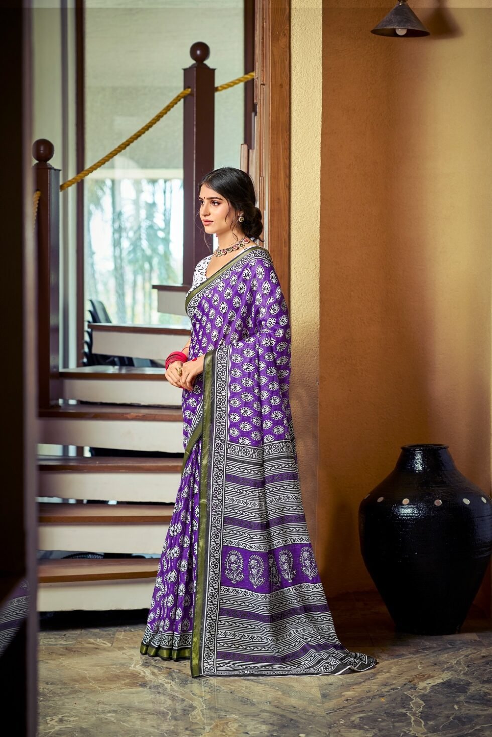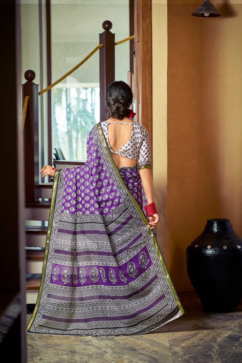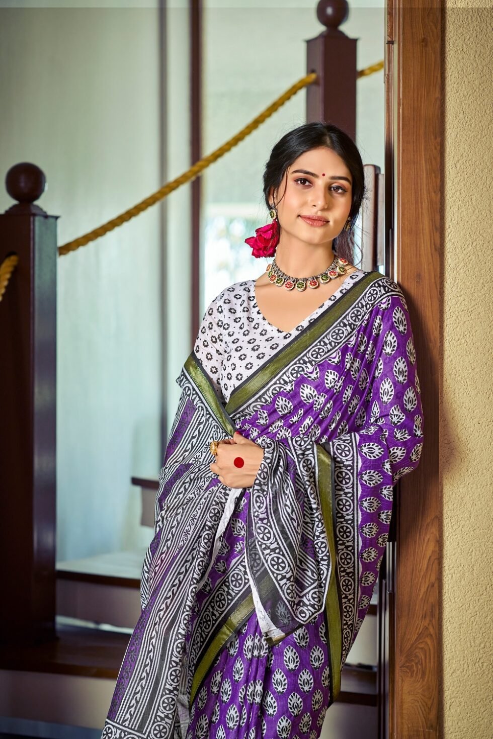 This is Cotton saree having Printed work on it. Cotton sarees are a staple of Indian traditional wear, known for their comfort, versatility, and durability. They are made from natural, breathable cotton fabric, making them ideal for various climates, especially hot and humid ones. Cotton sarees are versatile enough to be worn for everyday wear, formal occasions, and even special events.