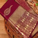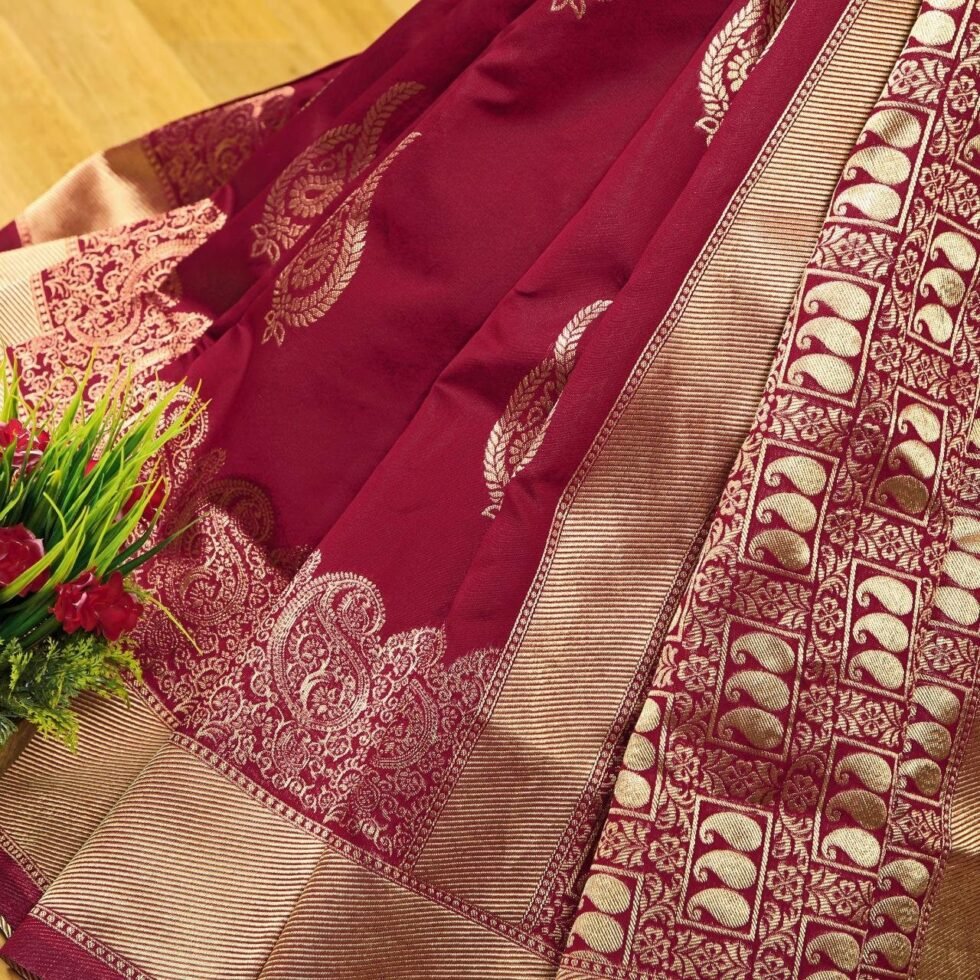 Malishka Export Jacquard Lichi Silk Maroon Saree With Unstiched Blouse Piece