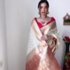 Malishka Export Jacquard Lichi Silk Pink Saree With Unstiched Blouse Piece