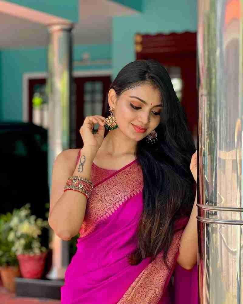 Malishka Export Jacquard Lichi Silk Pink Saree With Unstiched Blouse Piece