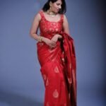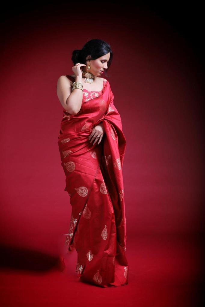 Malishka Export Jacquard Lichi Silk Red Saree With Unstiched Blouse Piece