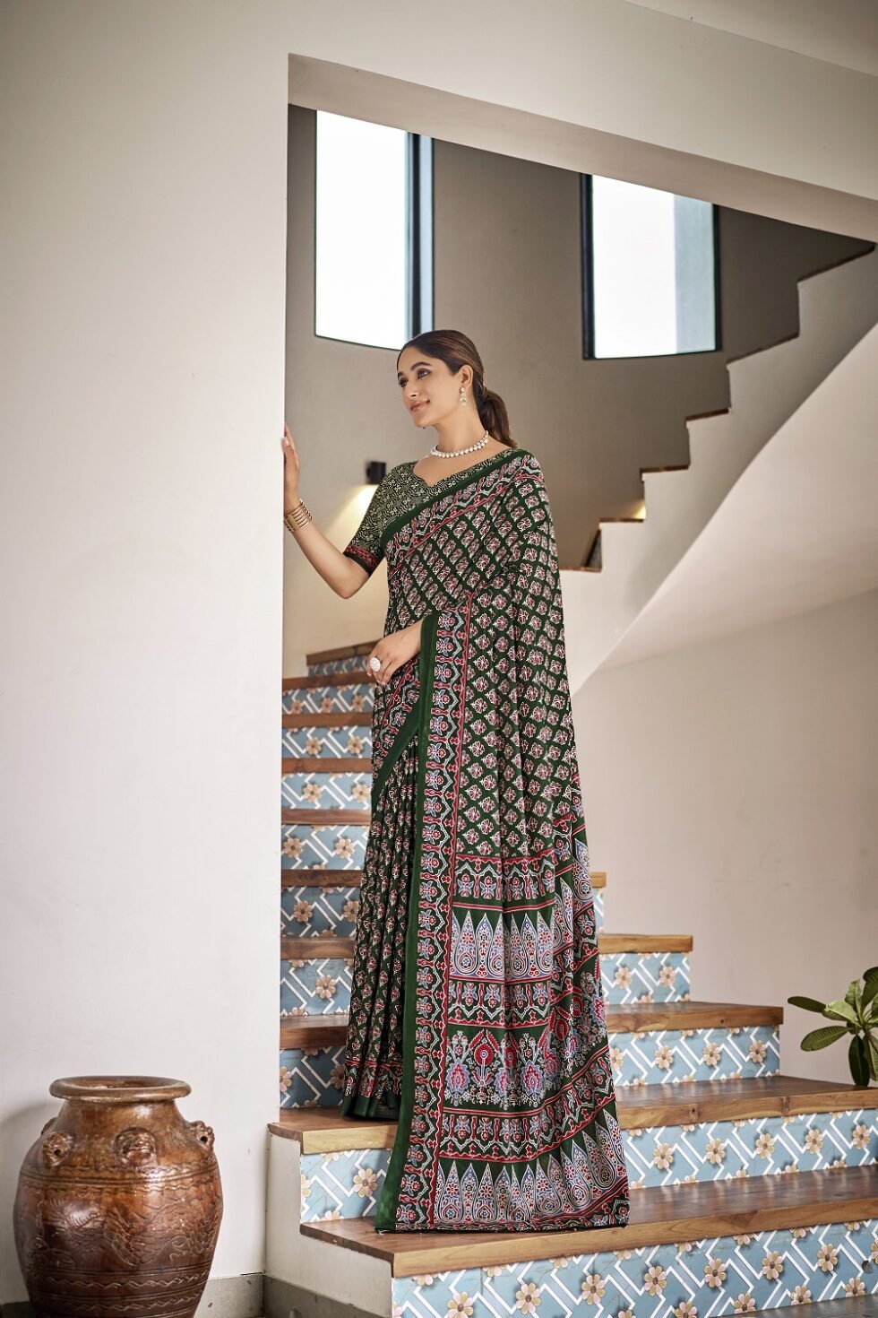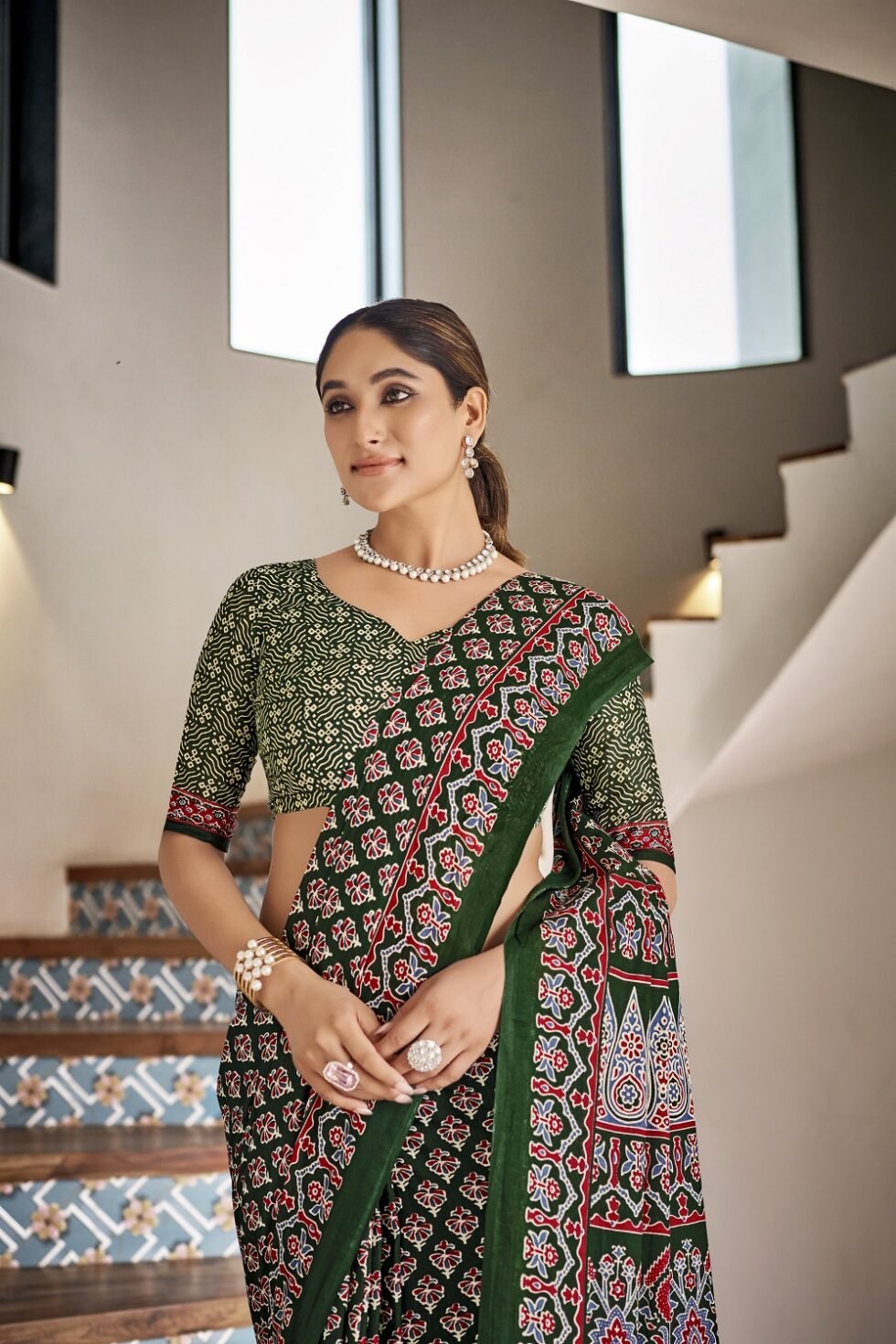 Malishka Export Cotton Printed Saree With Unstiched Blouse Piece