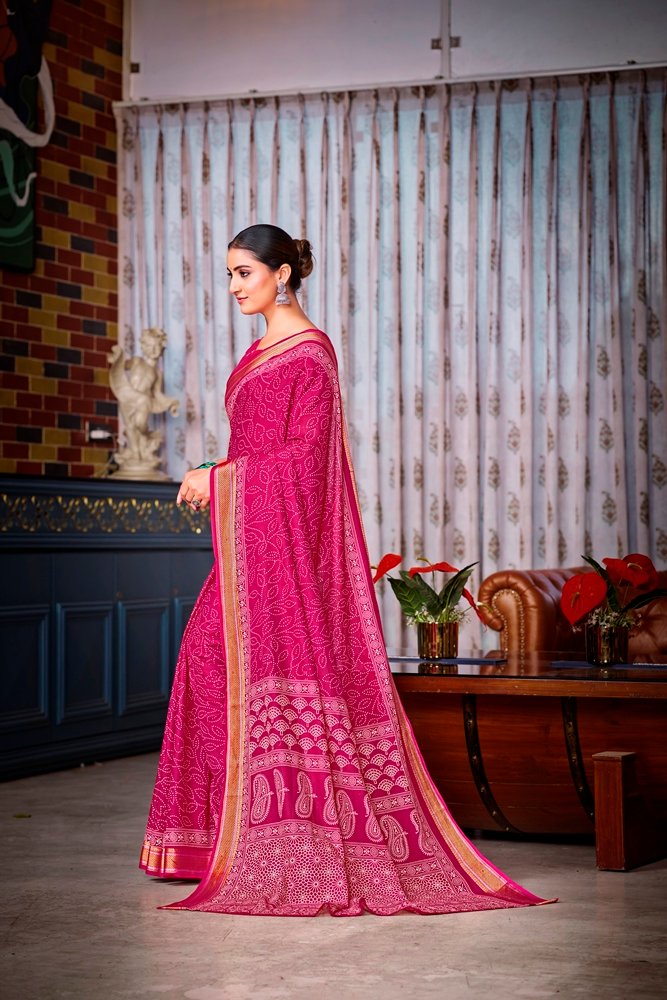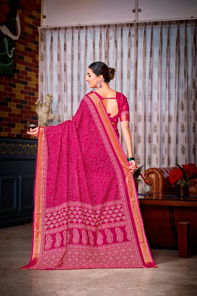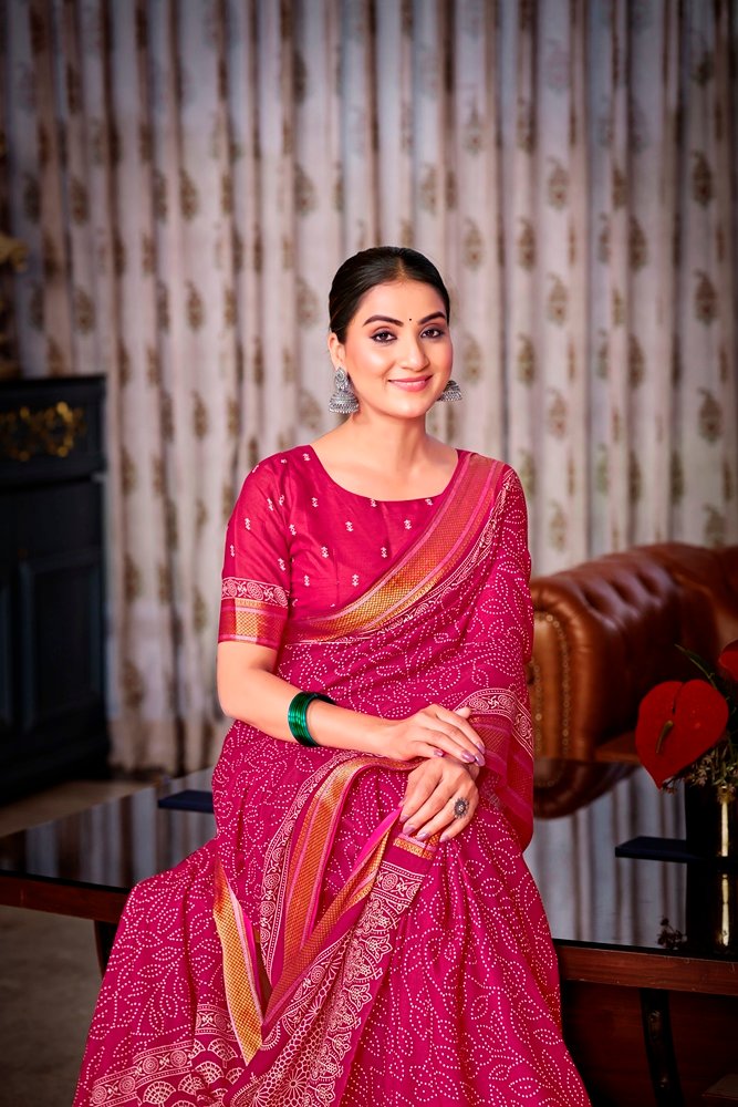 This is Cotton saree having Printed work on it. Cotton sarees are a staple of Indian traditional wear, known for their comfort, versatility, and durability. They are made from natural, breathable cotton fabric, making them ideal for various climates, especially hot and humid ones. Cotton sarees are versatile enough to be worn for everyday wear, formal occasions, and even special events.