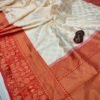 Malishka Export Jacquard Lichi Silk White Saree With Unstiched Blouse Piece