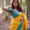 Malishka Export Jacquard Lichi Silk Yellow Saree With Unstiched Blouse Piece