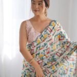 Malishka Export Mirror Lace Chinnon White Saree With Unstiched Blouse Piece