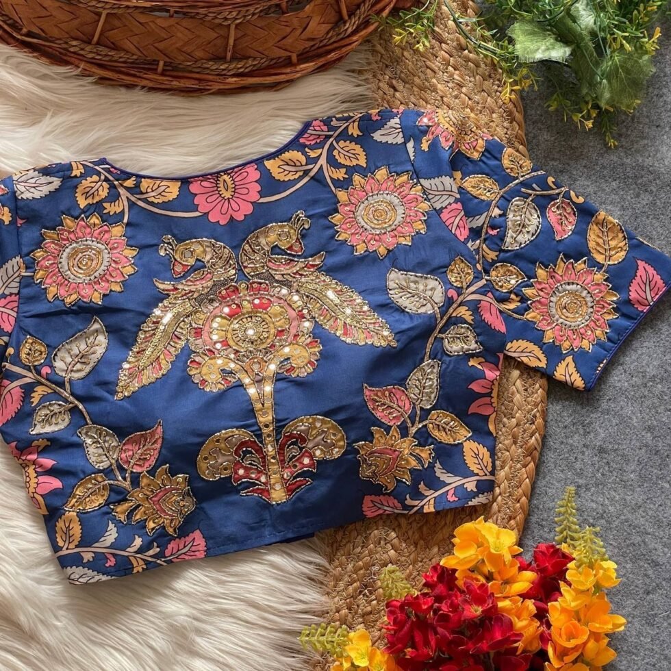 Malishka Export Women’s Blue Cotton Hand Work Readymade Blouse
