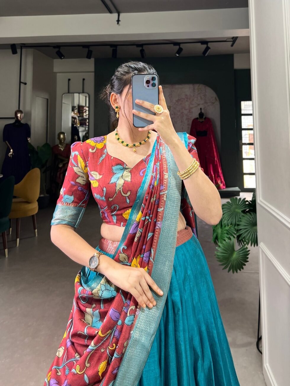 Infuse Your Wardrobe with Southern Grace?Dola Silk Kalamkari Print Lehenga Choli Featuring a Sophisticated Foil Work Border ??