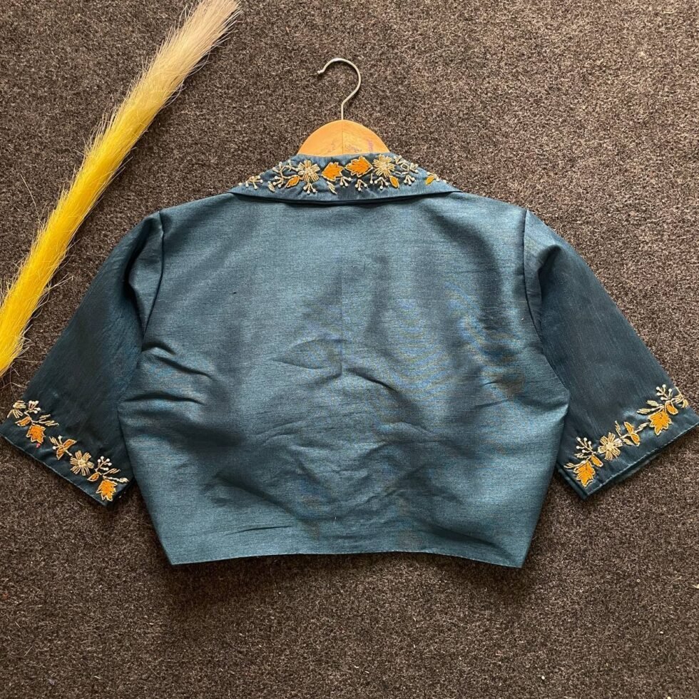 Malishka Export Women’s Grey Banglori Silk Hand Work Readymade Blouse