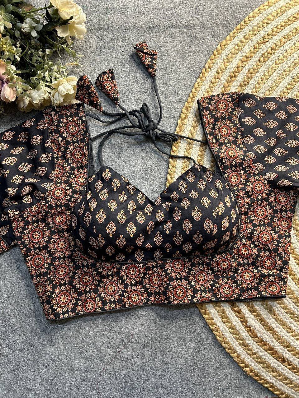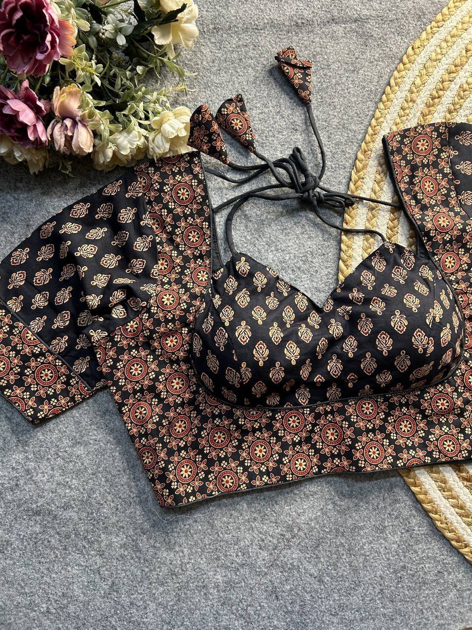 *MALISHKA EXPORT PRESENTING ORIGINAL AJRAKH COTTON COLLAR PATTERN BLOUSE*