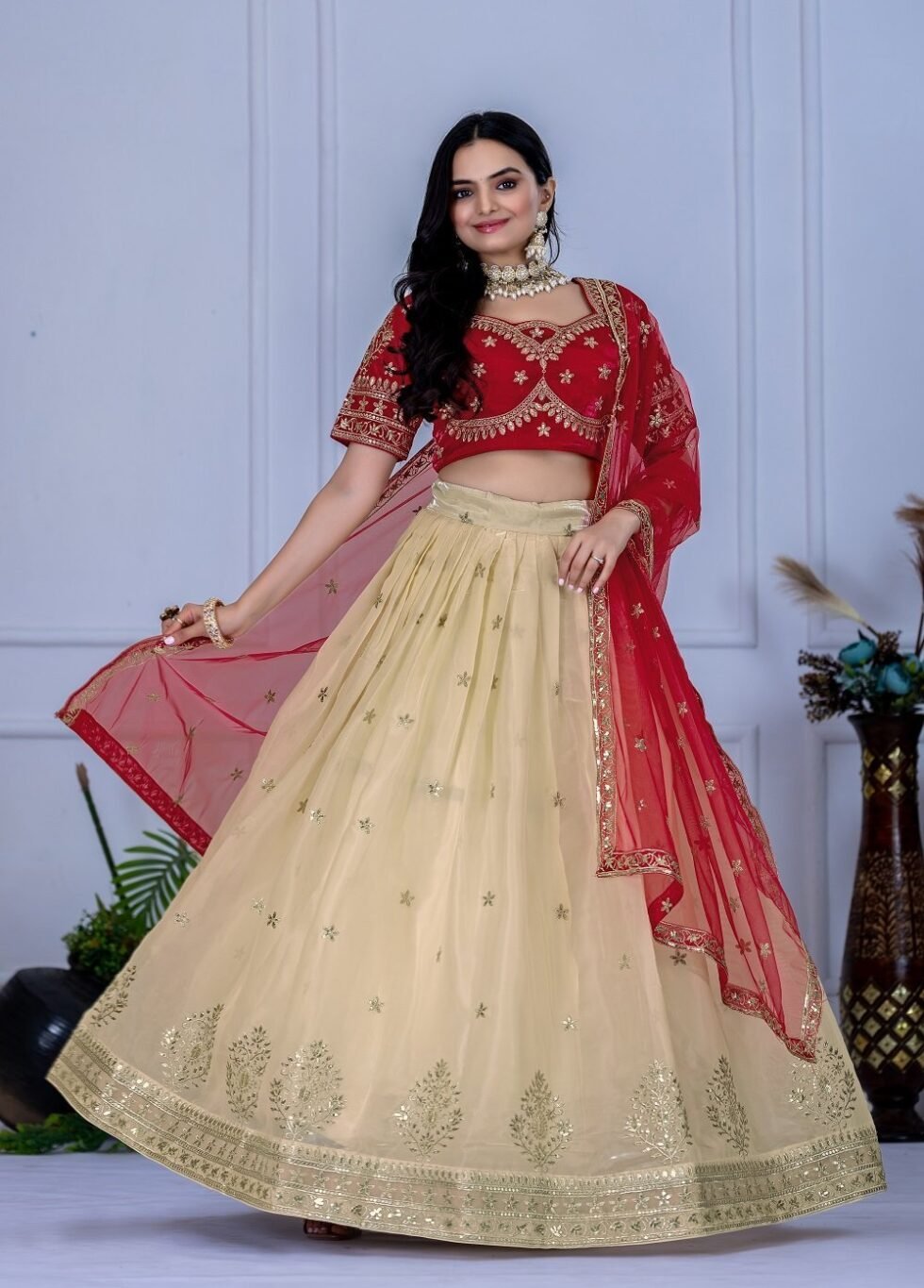 Malishka Export Womens Offwhite Jimmy Choo Fabric Embroidery Lehenga Choli Set