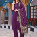 Malishka Export Women’s Purple Cotton Silk Solid Straight Kurta Pant With Dupatta