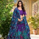 Malishka Export Womens Purple Dola Silk With Foil Print Lehenga Choli Set