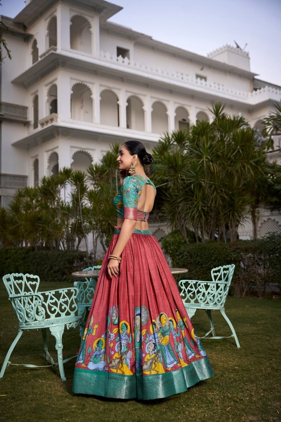 Malishka Export Womens Red Dola Silk With Jacquard Lehenga Choli Set
