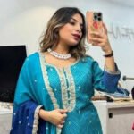 Malishka Export Women’s Sky Blue Chinon Bandhni print Straight Kurta Pant With Dupatta