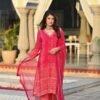 Malishka Export Women’s Teal Chinnon Silk Embroidered Straight Kurta Pant With Dupatta