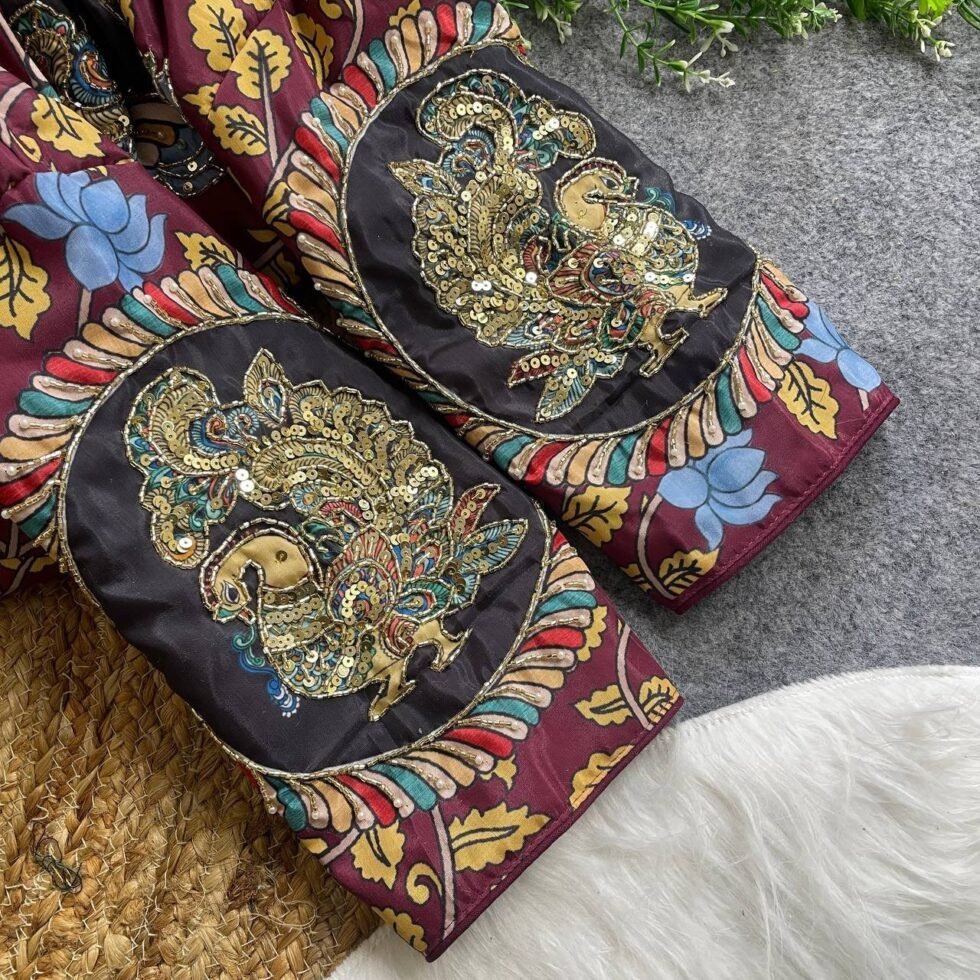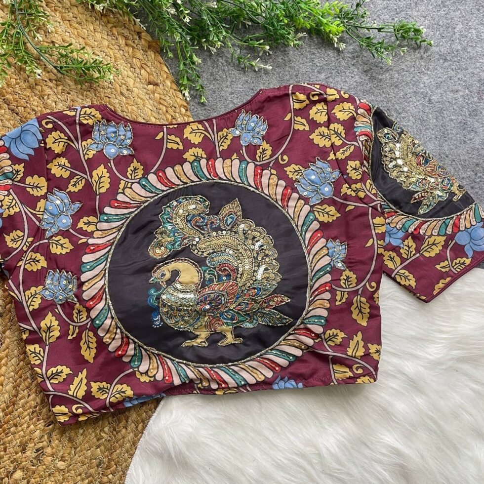 Malishka Export Women’s Wine Cotton Hand Work Readymade Blouse