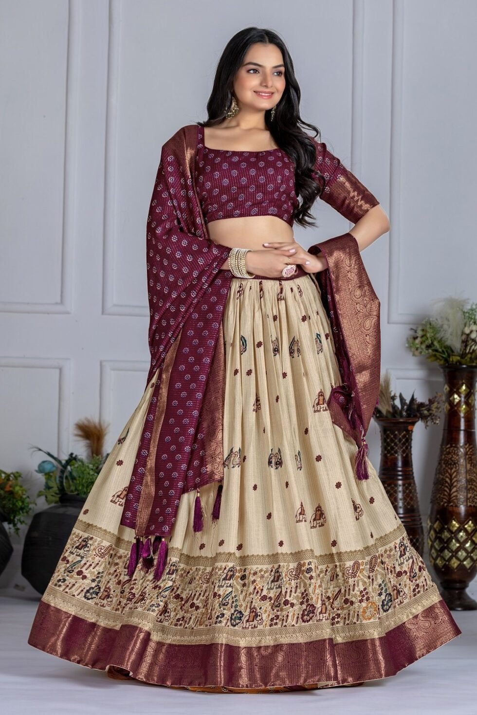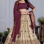 Malishka Export Womens Wine Heavy Lichi Fabric WIth Jacquard Border Lehenga Choli Set