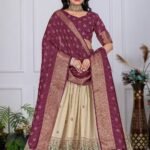 Malishka Export Womens Wine Heavy Lichi Fabric WIth Jacquard Border Lehenga Choli Set