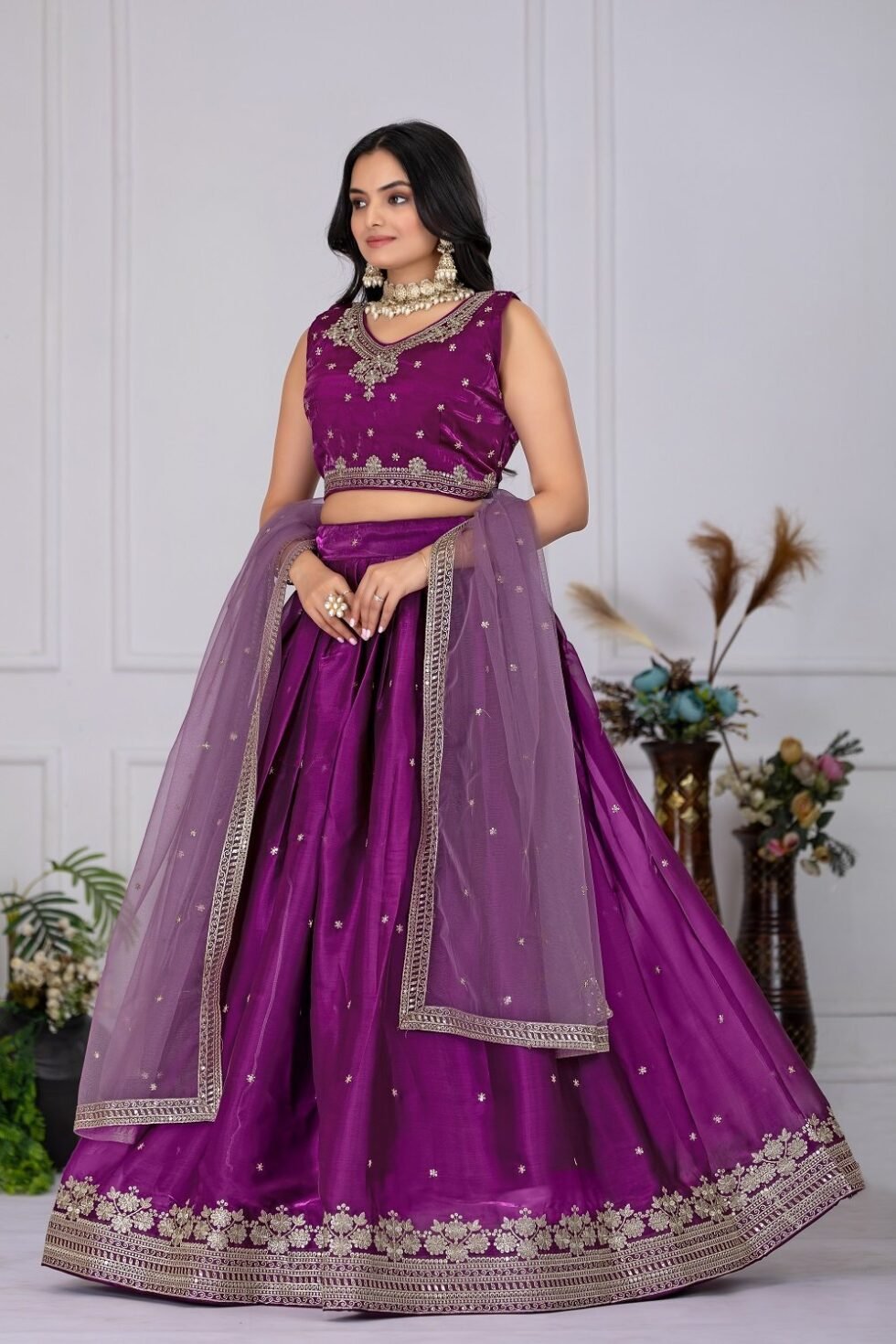 Malishka Export Womens Wine Jimmy Choo Fabric Embroidery Lehenga Choli Set