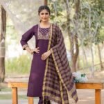 Malishka Export Women’s Wine Roman Silk Jacquard Straight Kurta Pant With Dupatta