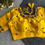 Malishka Export Women’s Yellow Pure Silk Hand Work Readymade Blouse