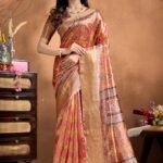 Celebrate the richness of tradition with this copper-rose soft silk saree, artfully woven with delicate ethnic motifs and a striking geometric pallu inspired by Patola patterns. The harmonious blend of mustard, red, and ivory motifs across the body adds a joyful vibrancy, while the ornate border with antique gold zari enhances its grandeur.