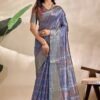 Silk Blend Digital Print Saree With Unstiched Blouse Piece