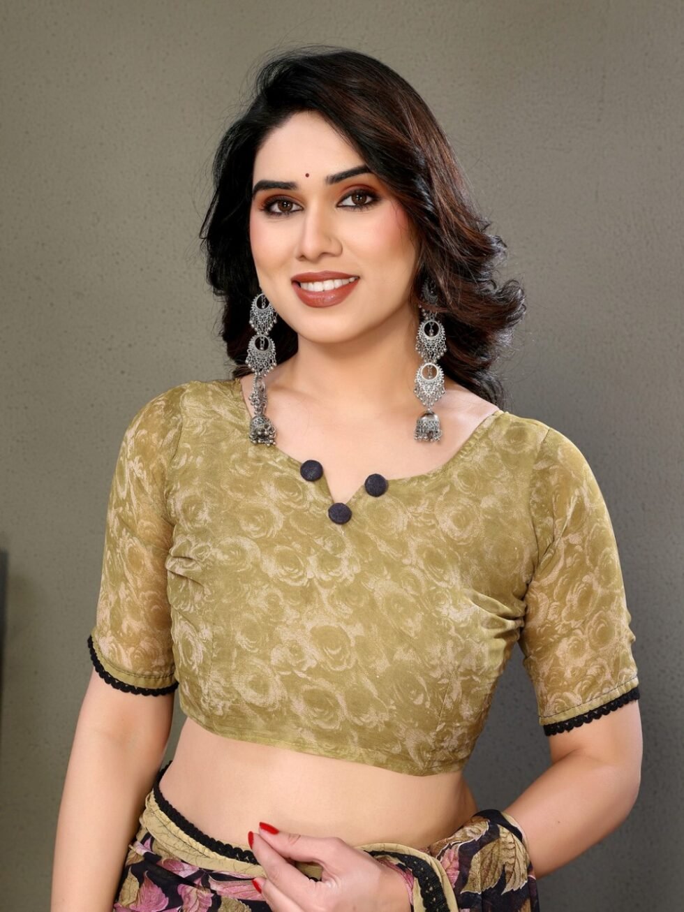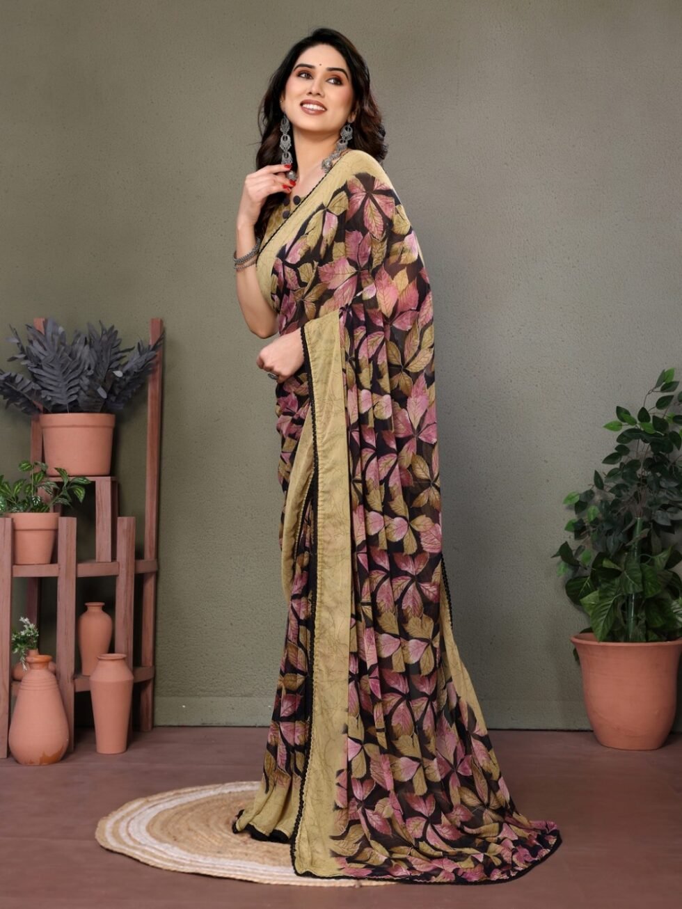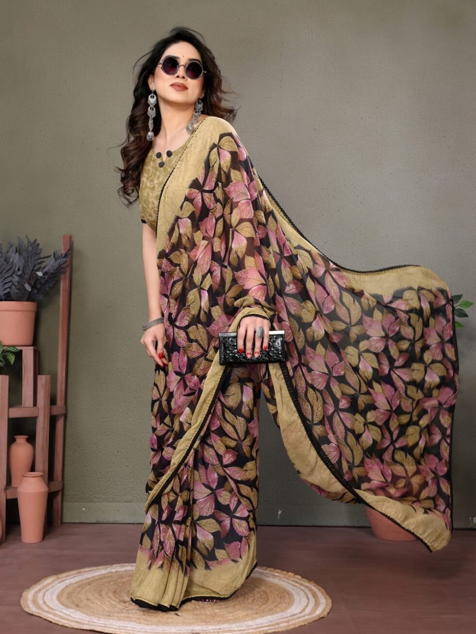 Soft Chiffon Floral Print Saree With Unstiched Blouse Piece